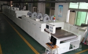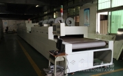 2、外形尺寸(約):總長24500mm*總高1740mm*總寬1890mm,地面到網(wǎng)帶的高度為950-1050mm,爐體內進料高度為150mm;烘干部分總長14000mm,分7段獨立控溫(每段4個測溫熱電偶),每段2000mm。冷卻段長4000mm,UV區(qū)2000mm,前后緩沖區(qū)各長500mm,進料部分長2000mm,出料部分長1500mm, 爐體前后大梁上方裝有急停開關,共4個。
